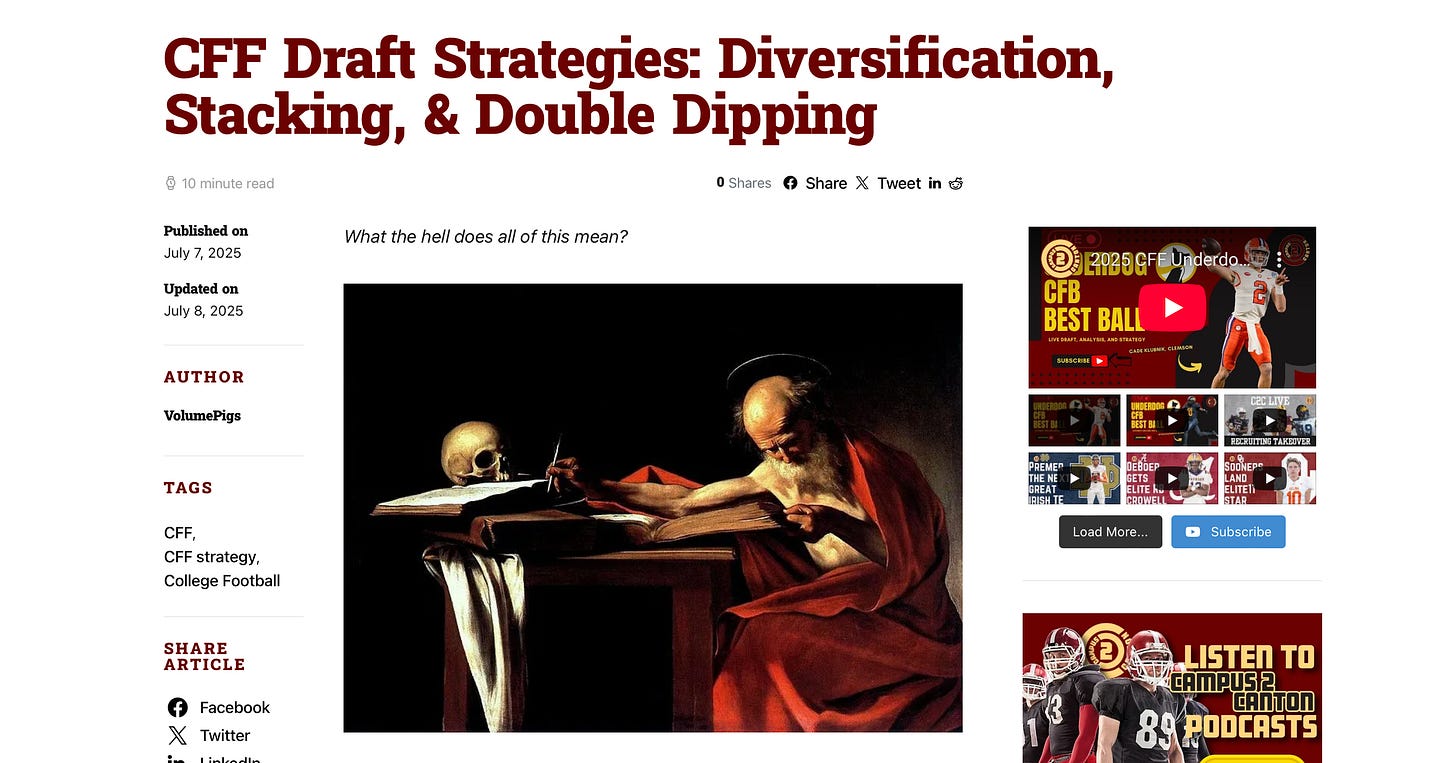 Hello all, happy Friday to you. You can find this article in full on Campus2Canton by clicking on the link. In it, I discuss some of the most common CFF draft strategies in detail. Cheers!