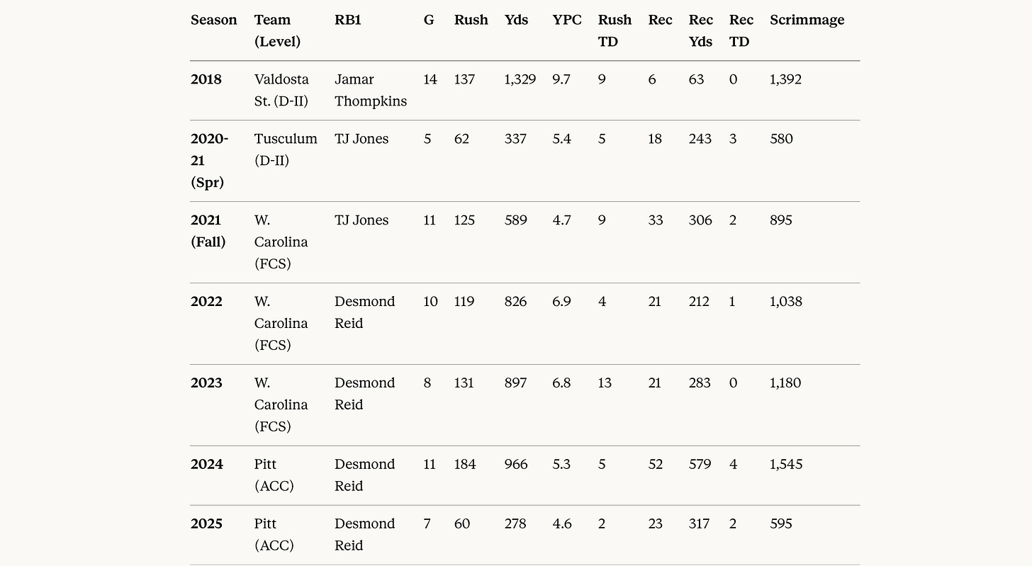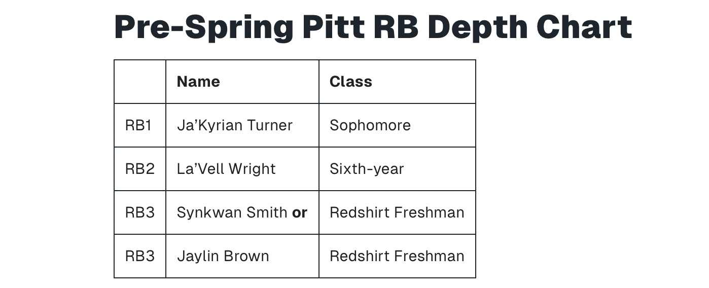 Anyways, I mention all of this because Pitt once again has a shifty #25 in its backfield. True sophomore Ja'Kyrian Turner was a standout as a freshman in 2025, at first playing behind senior Desmond Reid, and then eventually plugging in as the alpha in his absence.