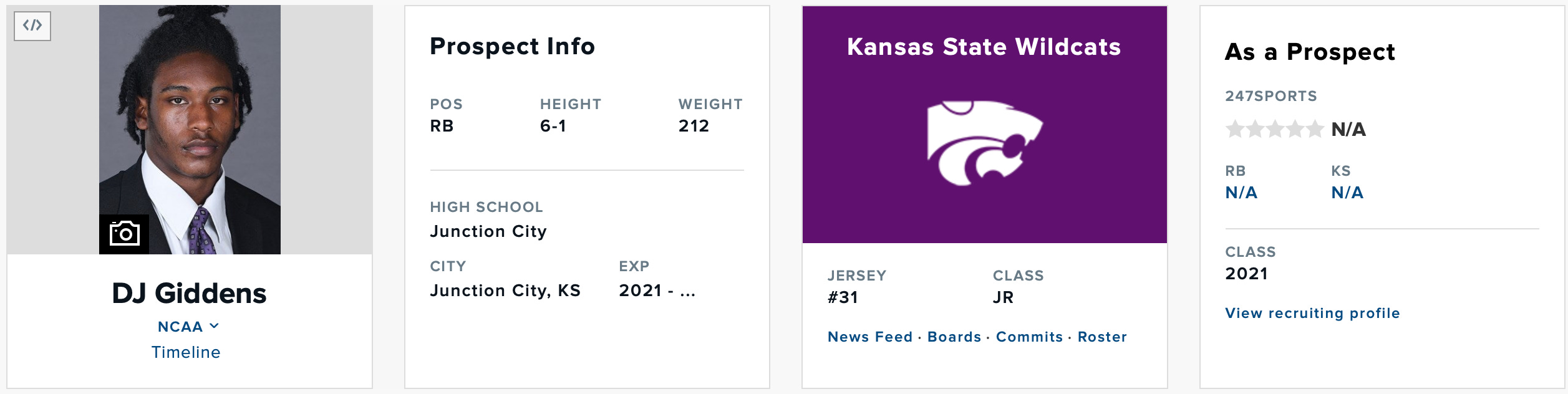 Giddens is entering his fourth year of CFB with the Wildcats. Formerly an unranked prospect out of Junction City, KS, he arrived in Manhattan as part of the 2021 class, which was a strangely strong RB group in the Sunflower state.
