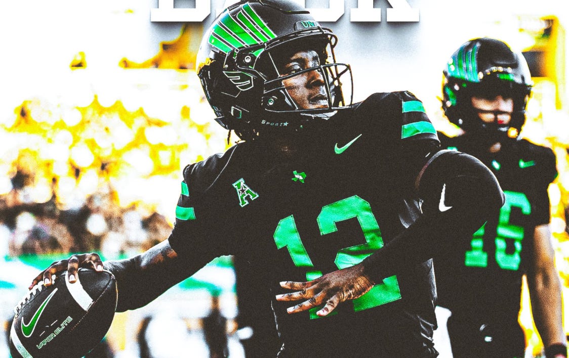 While I generally trust Poopoopeepee’s assessments on these matters, it should be noted that there will be a QB competition in Denton. Primarily, former UCF QB Tayven Jackson enters the room as one of the favourites to win the job.